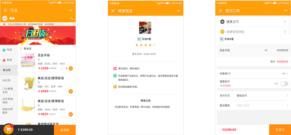 店铺名片,店铺营业时间、配送范围、时间、方式及店铺图标。